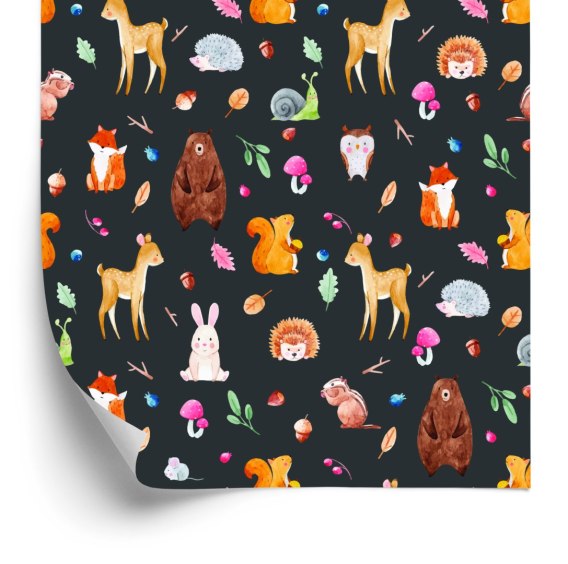 Tapeta Dla Dzieci - Zwierzątka Leśne Malowane Akwarelą