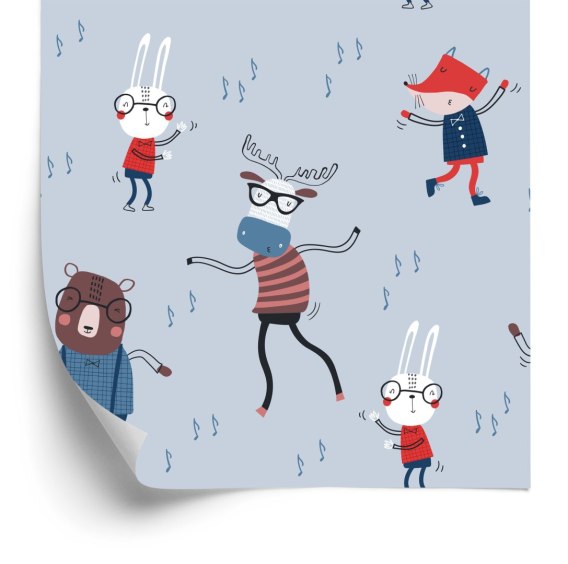 Tapeta Dla Dzieci Zwierzęta Nuty Styl Skandynawski