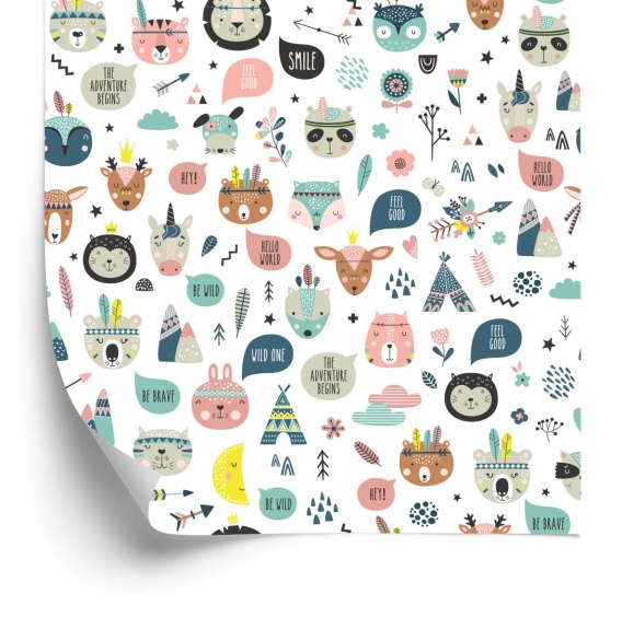 Tapeta Dla Dziewczynki Kolorowe Zwierzęta Kwiaty