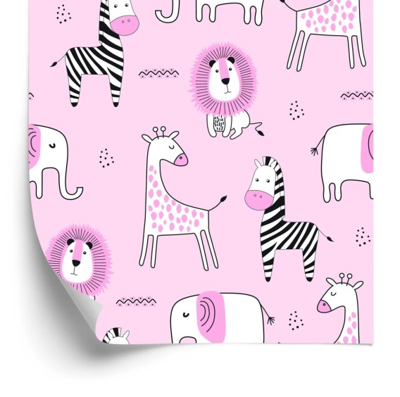 Tapeta Dla Dziewczynki W Zwierzątka, Lwy, Żyrafy