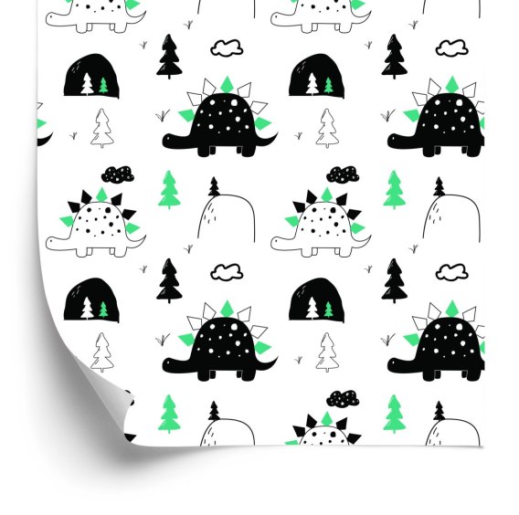 Tapeta Do Pokoju Dziecka Dinozaury, Drzewa, Chmury