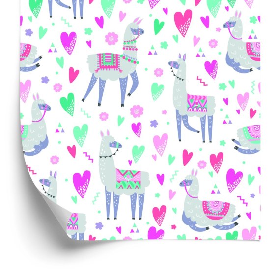Tapeta Do Pokoju Dziecka Lamy I Kolorowe Kwiaty