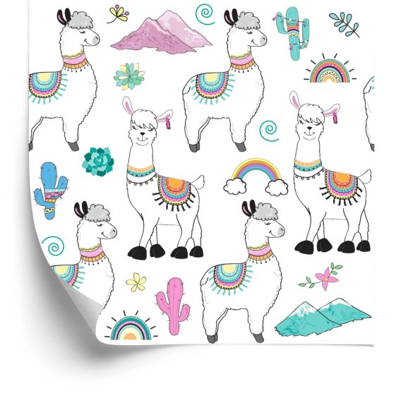 Tapeta Do Pokoju Dziecka, Lamy, Kaktusy, Góry
