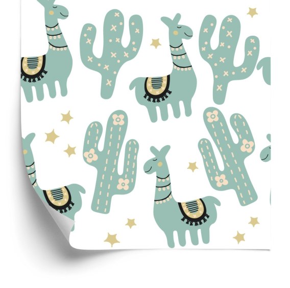 Tapeta Do Pokoju Dziecka, Lamy, Rośliny, Gwiazdy