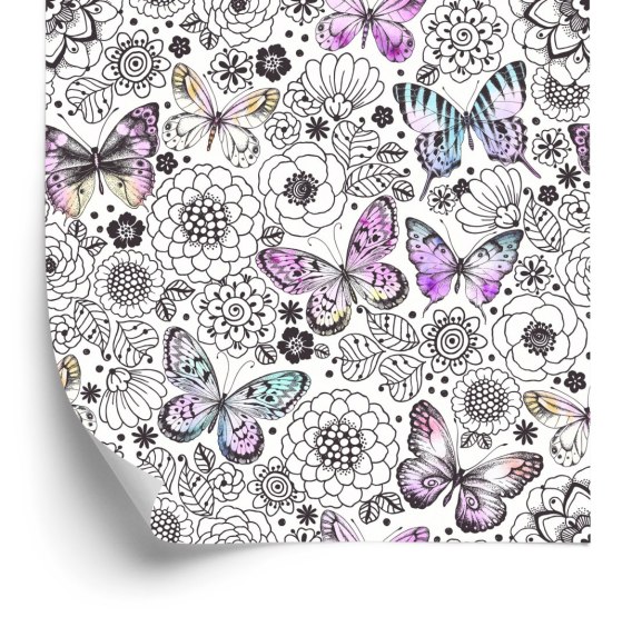 Tapeta Do Pokoju Dziecka, Motyle, Kwiaty, Liście
