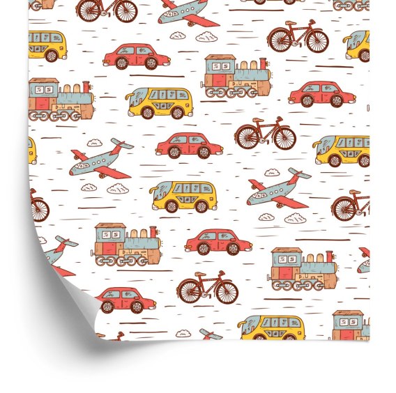 Tapeta Do Pokoju Dziecka W Auta, Samoloty, Rowery
