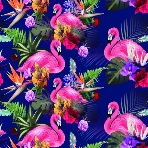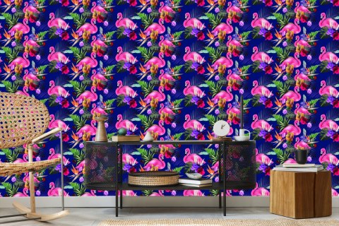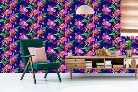 Tapeta Do Salonu, Ptaki, Flamingi, Kwiaty, Rośliny