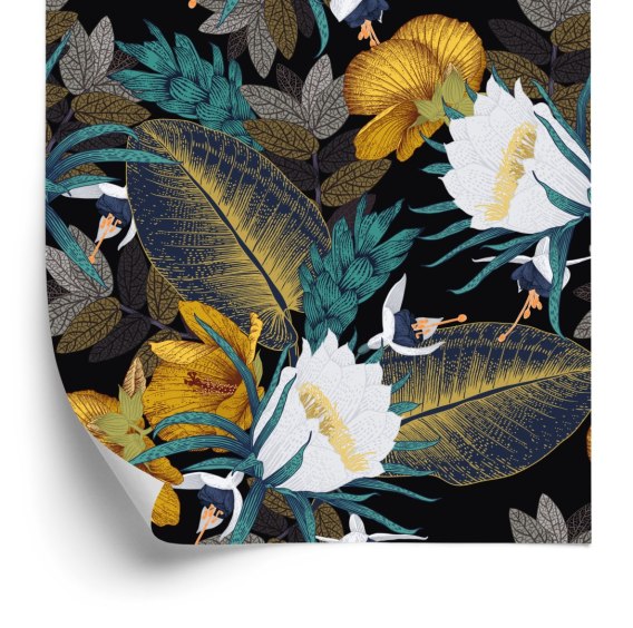 Tapeta Egzotyczne Liście I Kwiaty