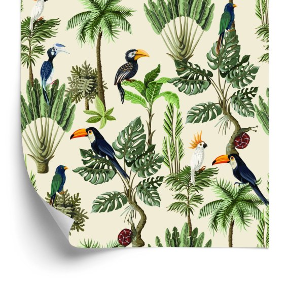 Tapeta Egzotyczne Ptaki I Rośliny W Stylu Vintage