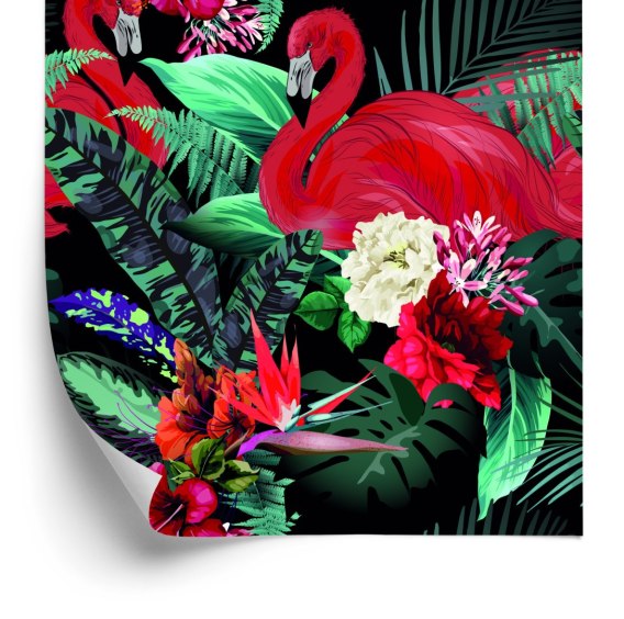 Tapeta Flamingi, Kwiaty, Liście, Sypialnia