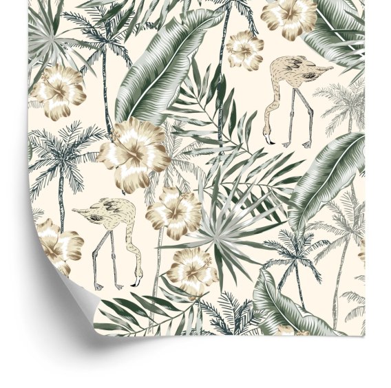 Tapeta Flamingi Z Liśćmi Palmowymi