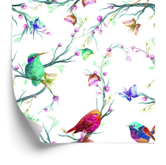Tapeta Kolorowe Ptaki Na Kolorowym Tle
