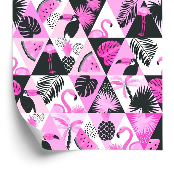 Tapeta Nowoczesna Mozaika Z Egzotycznymi Ptakami I Roślinami