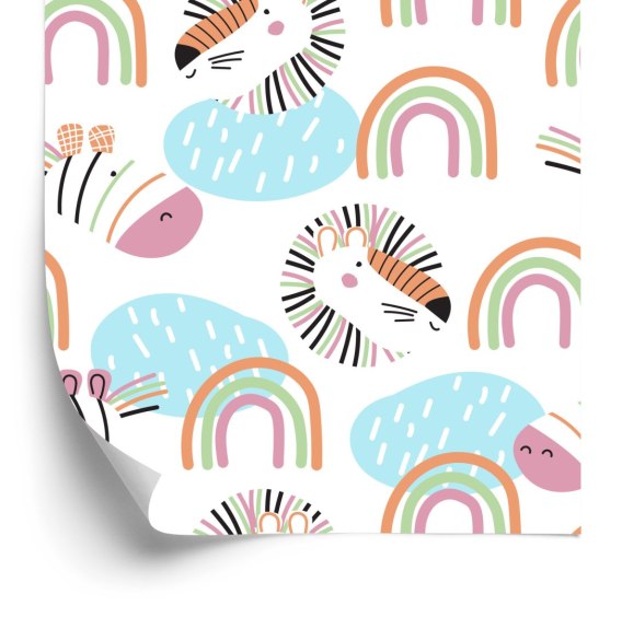 Tapeta Pastelowe Zwierzęta Tęcza Pokój Dziewczynki