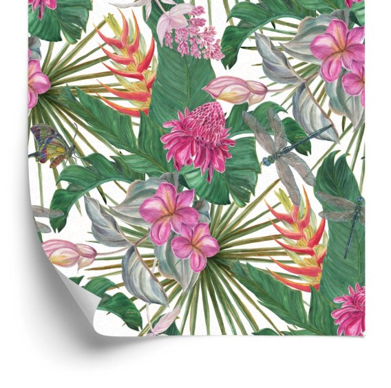 Tapeta Piękne Liście Egzotyczne Kwiaty