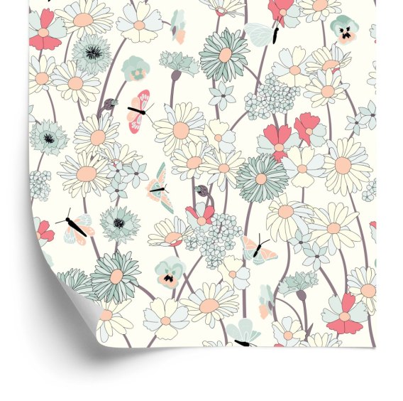 Tapeta Polne Kwiaty Z Motylami