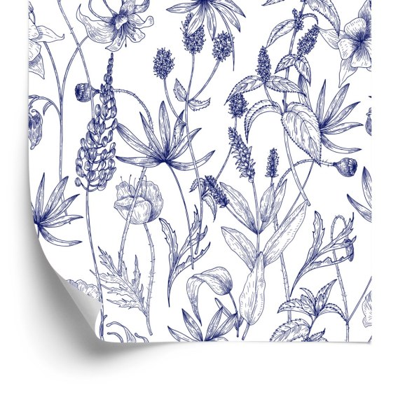 Tapeta Retro - Ręcznie Rysowane Dzikie Kwiaty I Zioła