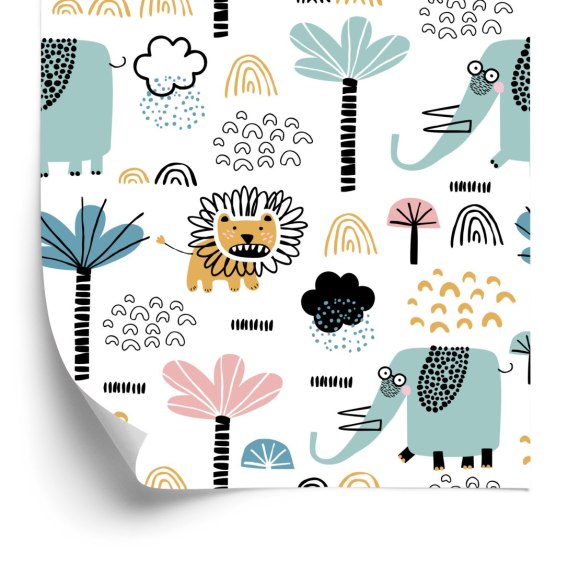 Tapeta Sawanna, Lwy, Słonie, Drzewa, Pokój Chłopca