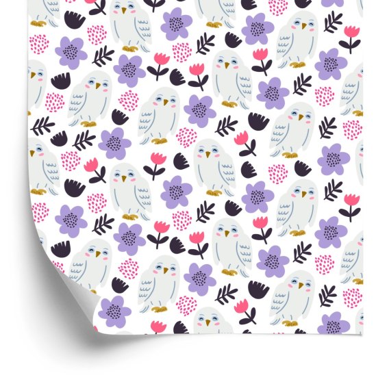 Tapeta Sowy Z Kwiatami W Tle