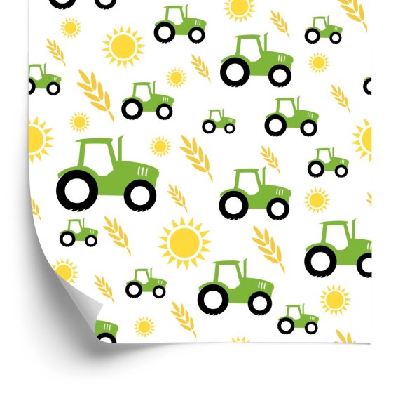 Tapeta Traktory Z Zbożem I Słońcami
