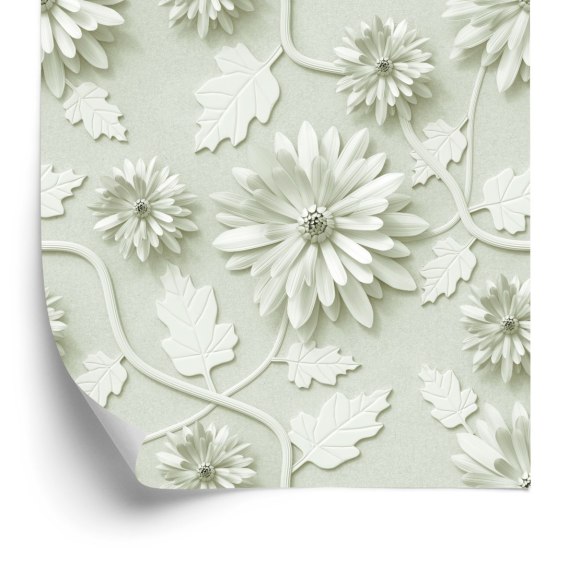 Tapeta Trójwymiarowe Chryzantemy Z Liśćmi