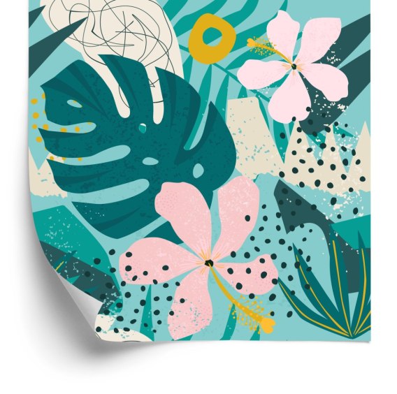 Tapeta Tropikalna - Modne Kolorowe Liście I Kwiaty