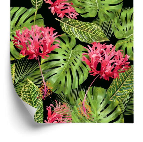 Tapeta Tropikalne Kwiaty W Liściach
