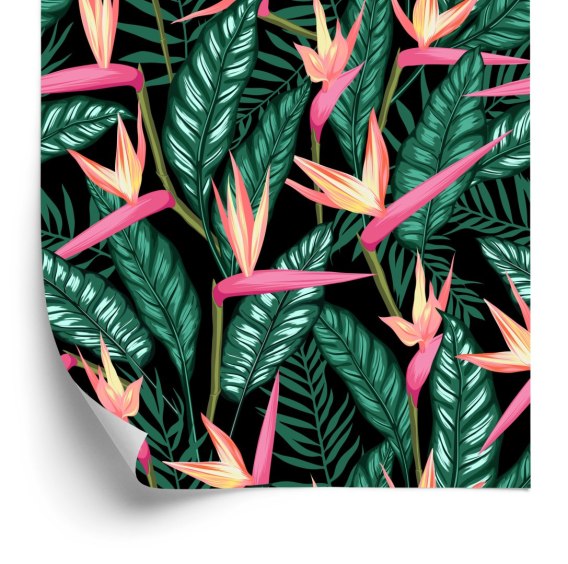 Tapeta Tropikalne Kwiaty Z Liśćmi Palmowymi