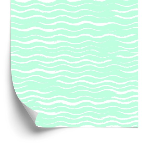 Tapeta Turkusowa - Białe Fale Rysowane Kredą