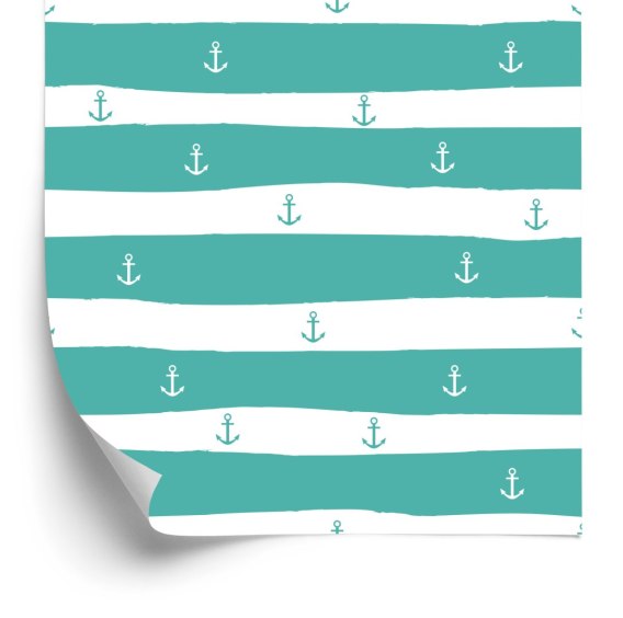 Tapeta Turkusowa-Morskie Paski I Kotwice