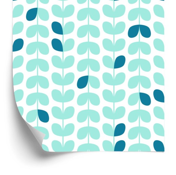 Tapeta Turkusowe Liście W Stylu Skandynawskim
