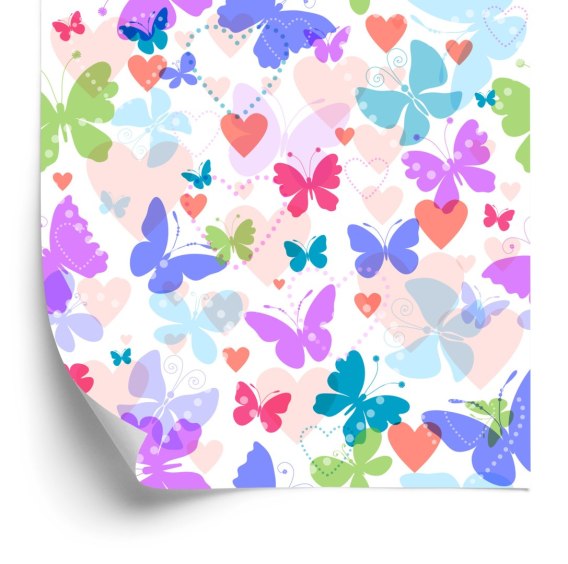 Tapeta W Kolorowe Motyle, Serca, Pokój Dziecięcy
