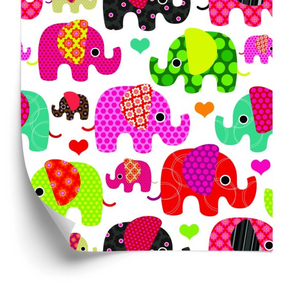 Tapeta W Kolorowe Słonie, Serduszka, Pokój Dziecka