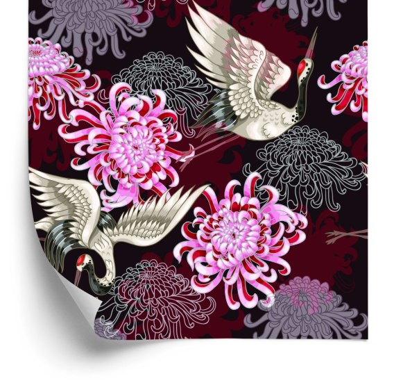 Tapeta - Żurawie I Kolorowe Kwiaty