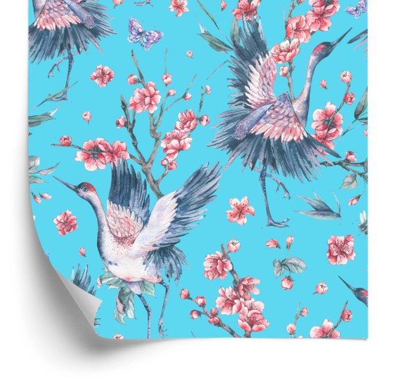 Tapeta - Żurawie, Motyle I Kwiaty